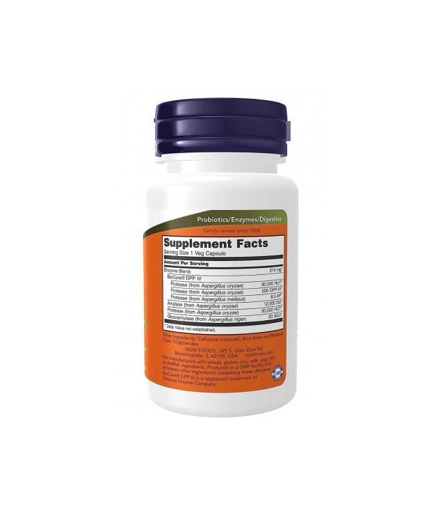 Enzimas Digestivas de Glúten NOW é um complexo completo de enzimas digestivas que promove um processamento mais fácil dos alimentos que contêm glúten, que são na maioria cereais.