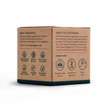Pasta de dentes sem espuma e removedora de manchas superficiais, formulada com Carbonato de Cálcio e Argila Caulim. Aromatizada com óleo essencial biológico de hortelã-pimenta pelas suas propriedades antibacterianas.